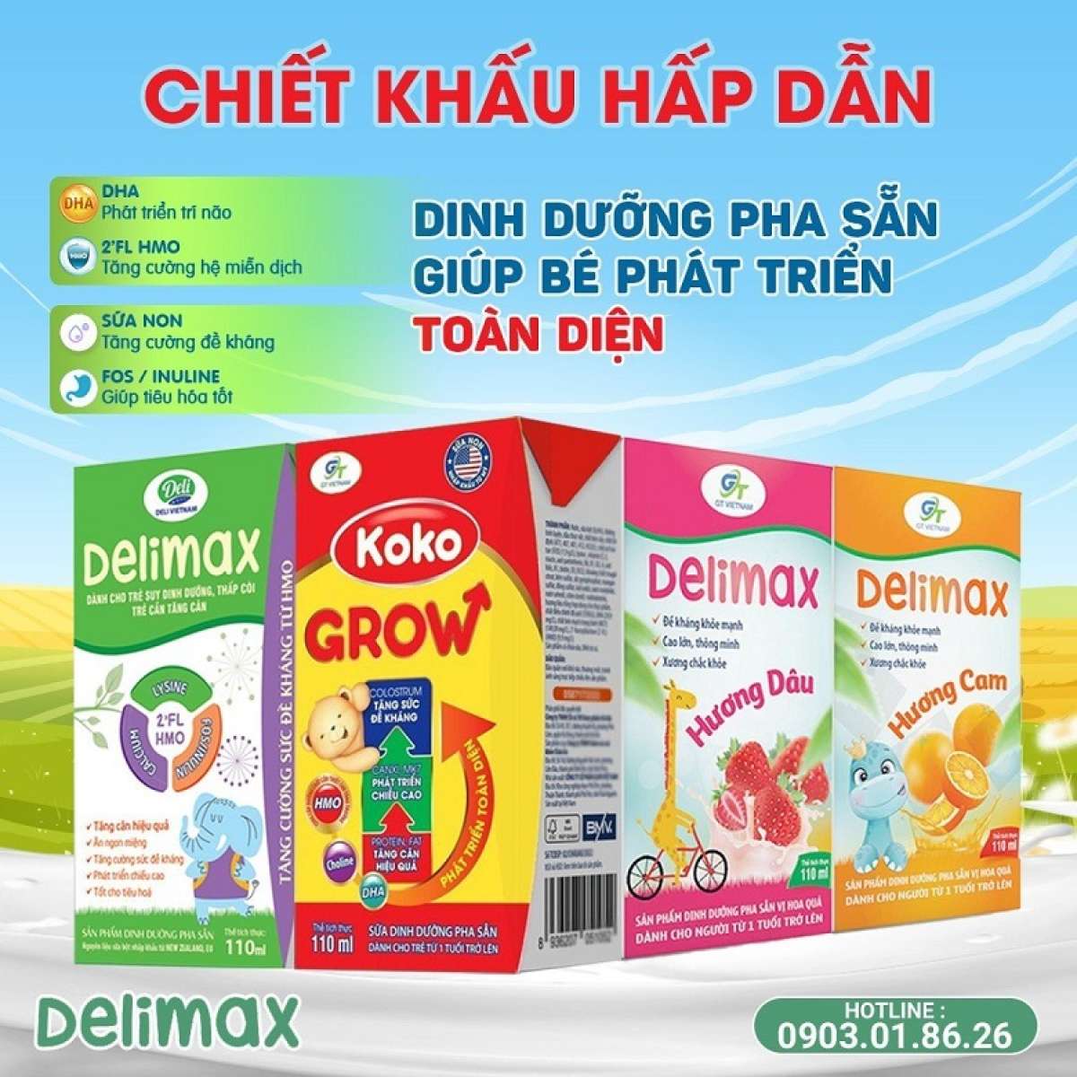 Với mong muốn được cùng mẹ chăm sóc cho bé vào những giai đoạn quan trọng trong hành trình phát triển, GT Việt Nam mang đến sản phẩm Bột ăn dặm Delimax cho bé khởi đầu mạnh khỏe thông minh bao gồm vị: