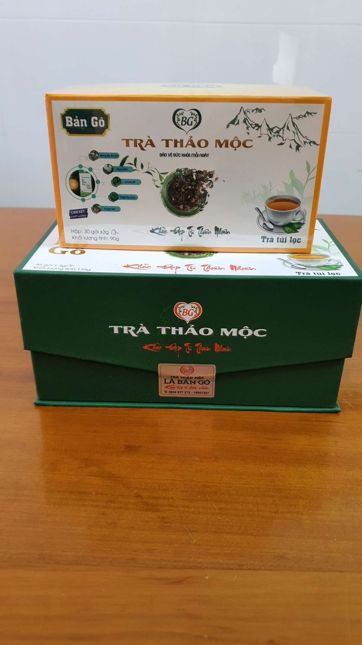 Trà Bản Gô là sản phẩm được chiết xuất từ một số dược liệu tự nhiên trên đồi trọc Trường Sơn: Diệp Hạ Châu, Cà Gai Leo, Hoa Đu Đủ đực, Bồ Đề, Hoa Nhài. Kèm giấy chứng nhận An toàn thực phẩm nên cả nhà yên tâm nhé!