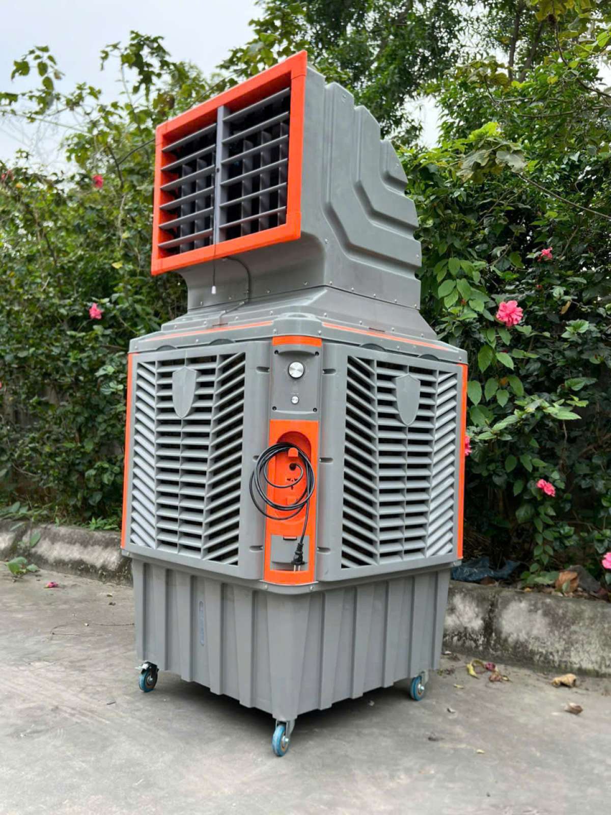 Quạt hơi nước khủng longQuạt hơi nước khủng longẢnh thực tế tại nhà máy sản xuấtCông suất | 1100W-1500WĐiện áp | 220v/50hzLưu lượng gió | 25000-35000m3 Thể tích | 110L-130L Hướng gió | 2 chiều tự động Mô tơ | Lõi đồng 100% Độ ồn | <60dB Diện tích làm mát | 60 – 100m2 Lượng nước tiêu thụ | 10 – 12L/h Kích thước máy | 90x90x190